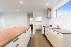 The home has a contemporary feel while reflecting some quirky personalised features added by the builder. It features a scullery that flows from the open plan dining/living area. Next to the living area there is a separate media room.