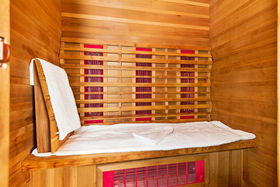 The 72m² building also has a shower and changing room, along with a separate massage room and a three person far infra-red cedar timber sauna.