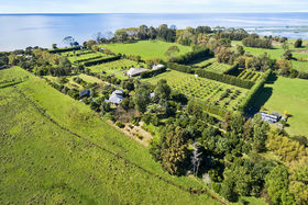 The architecturally designed home of 245m² sits on 12,001m² within walking distance to the sea. Finished in 1999, it is built of locally sourced rammed earth and cement walls (350mm thick) with upper cladding of timber and a long run colour steel roof. There are concrete polished floors, Douglas fir timber joinery and kiln dried poplar T & G raked ceilings. The exposed rammed earth walls along with contrasting untreated Macrocarpa and Douglas fir timber give a warmth and environmentally friendly approach to modern rural living in a highly appealing coastal/pastoral setting on the Firth of Thames, with a backdrop of the native forested Hunua Range. Absolutely no chemically treated building materials, solvents or coatings have been used in this totally non-toxic house.