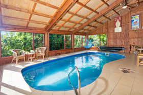 The pool house, with its rustic untreated timber construction, abundance of internal light, high ceiling, 3 stained glass window features, and inspired tiling of wet areas has a highly notable special energy about it.
