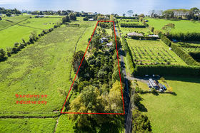 The land is flat to gently sloping, with one slightly steep small orchard block on the northern side The lower land bordering the property to the north is a natural flood plain, so provides a natural barrier for an open view as it would be unsuitable for future building or development, The aspect is rural and very pleasant with views back to the Hunua Ranges and a short walk to the main East Coast Road (7km north of the village of Kaiaua) allows beach access and the playground of the Firth of Thames.