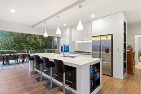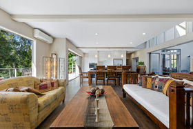 A new gourmet kitchen complete with butlers pantry compliments the spacious open living area, flowing out through bi-fold doors onto an extensive deck set high in the trees. High pitched ceilings throughout give a sense of space and grandeur as you move from one room to the next. The formal lounge is in its own right an extensive room, ideal for hosting dinner parties or simply using as a second living area for the family. For those that still enjoy semi-formal dining, there is a separate dining room for formal settings.