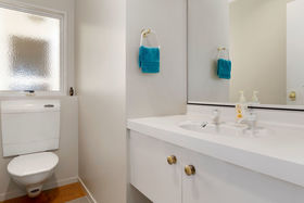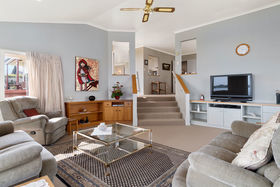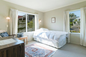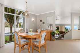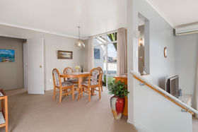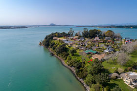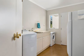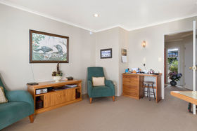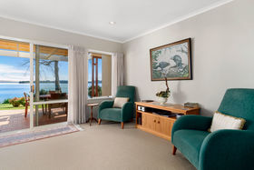 Back inside all the living areas, including the step down lounge have views out over the harbour to Matakana Island or of the magnificent trees in the Reserve from the seperate dining room. A large bathroom accompanies the other two bedrooms, as well as an adjoining guest toilet, the seperate laundry has access to the double garage and well planted rear garden, there is even a handy vegie garden for fresh seasonal produce.