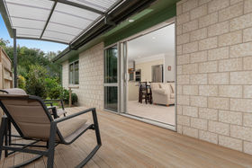 The 158m2 home has generous light, bright living spaces and a chef's kitchen; a master bedroom with ranch sliders opening to a patio area, a second good sized second bedroom, beautiful main bathroom plus a separate toilet with full vanity.