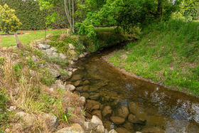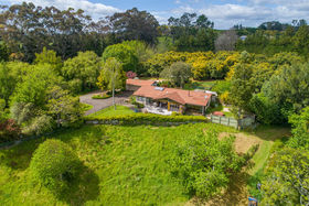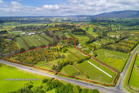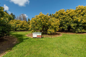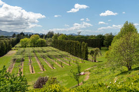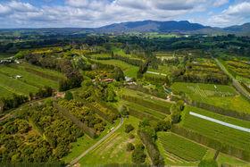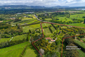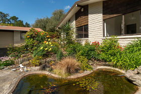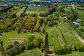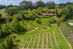 North facing, sunny, sheltered 5.8ha of mixed orchard and landscaped easy-care grounds with stream flowing through.