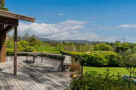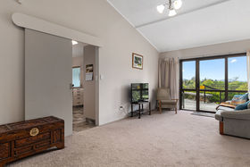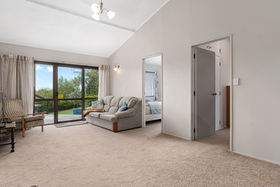 Contemporary modern design family home with comfortable sunny open plan living, lounge & dining room. The conservatory provides an indoor-outdoor flow to the spacious timber deck and spa pool area with Kaimai Range views.