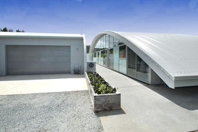 The purist design of the home follows an elegant arched roofline that reaches over its entirety.