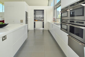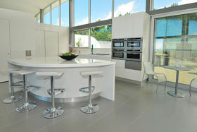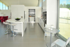 The predominant use of white complemented with dulled metallic silver floors creates a highly contemporary feel against which any type of furnishings and art would easily adapt. The enormous working kitchen, with the highest of specifications and superb finish, caters to the entirety of the living. The large island bench employs the reoccurring thematic of the curve that is integral to the almost organic design of the home.